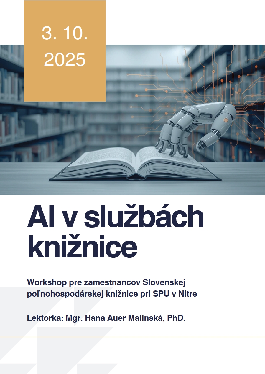Keďže nové technológie môžu zásadne ovplyvniť knižničnú prácu, sústreďuje sa Slovenská poľnohospodárska knižnica v oblasti vzdelávania zamestnancov práve na túto oblasť. 3. 10. 2025 sa uskutočnil workshop pre odborných zamestnancov knižnice s názvom AI v knižničných službách.