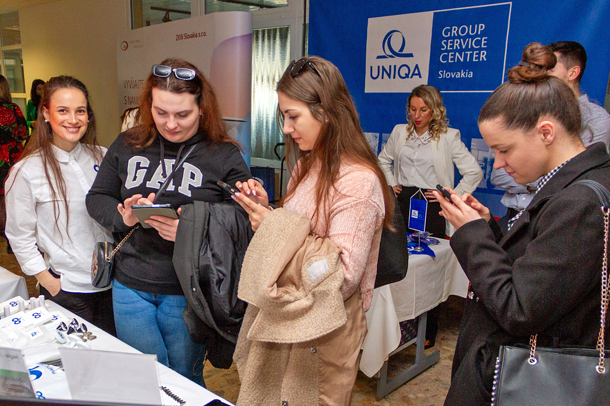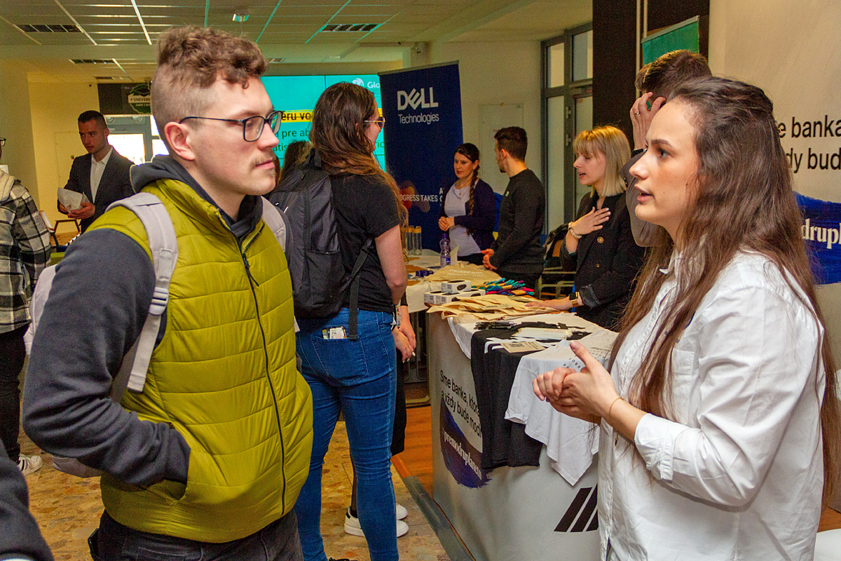 Študentka 4. ročníka študijného programu kvantitatívne metódy v ekonómii Miroslava Firkaľová pred dvoma rokmi využila ponuku firmy IBM v Bratislave, kde je zamestnaná na polovičný úväzok. „Takéto podujatie je veľmi prínosné, lebo poskytuje priamy kontakt s firmami zameranými na ekonomiku. Dnes chcem získať čo najviac informácií o pracovných ponukách a perspektívach v mojom odbore po skončení inžinierskeho stupňa štúdia,“ povedala. Ako ďalej dodala, všimla si, že firmy si robili aj akýsi minipohovor so študentmi končiacich ročníkov. „Zaujímali sa, aké majú praktické skúsenosti a vyberali si svojich potenciálnych zamestnancov. Študentom mladších ročníkov zase ponúkali polovičné pracovné úväzky a brigády,“ ocenila prínos podujatia M. Firkaľová.