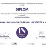 Úspech SPU v kategórii internacionalizácia je výsledkom dlhodobej, systematickej a kvalitnej práce celej univerzity – pedagógov, zamestnancov, študentov aj všetkých partnerov, ktorí prispievajú k prepojeniu SPU so svetom. Ocenenie prevzala prorektorka pre strategický rozvoj a internacionalizáciu Lucia Palšová počas Adventného koncertu, ktorý sa konal 11. decembra 2025 v Moyzesovej sieni Filozofickej fakulty Univerzity Komenského v Bratislave. V panelovej diskusii s víťazmi jednotlivých kategórií predstavila aktivity a ciele SPU v oblasti internacionalizácie.