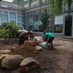 V zrevitalizovanom átriu dominujú magnólie, hortenzie a tisy