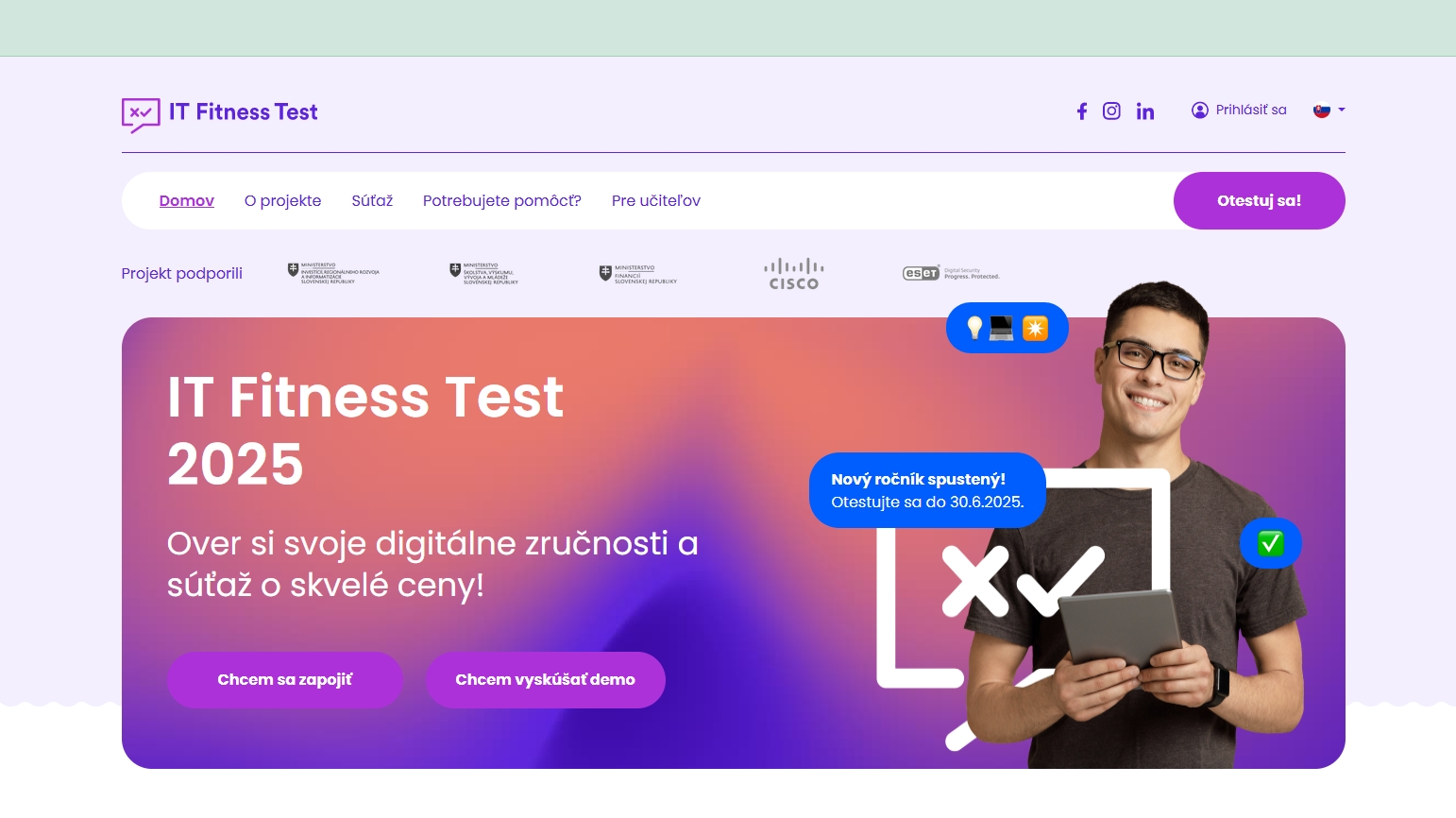 Zaregistrujte sa do 30. júna 2025 na www.itfitness.eu a zapojte sa do IT Fitness Testu.