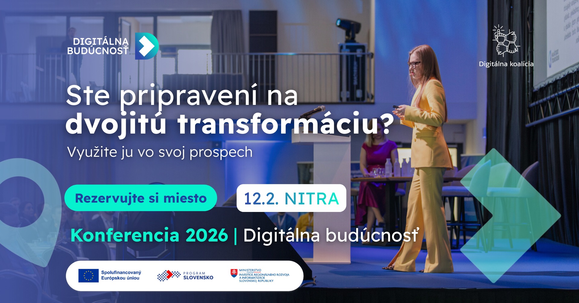 Pozývame vás na konferenciu Digitálna budúcnosť, určenú pre riadiacich pracovníkov podnikov, samospráv a orgánov verejnej moci, ktorí sú kľúčovými nositeľmi zmien v organizáciách.