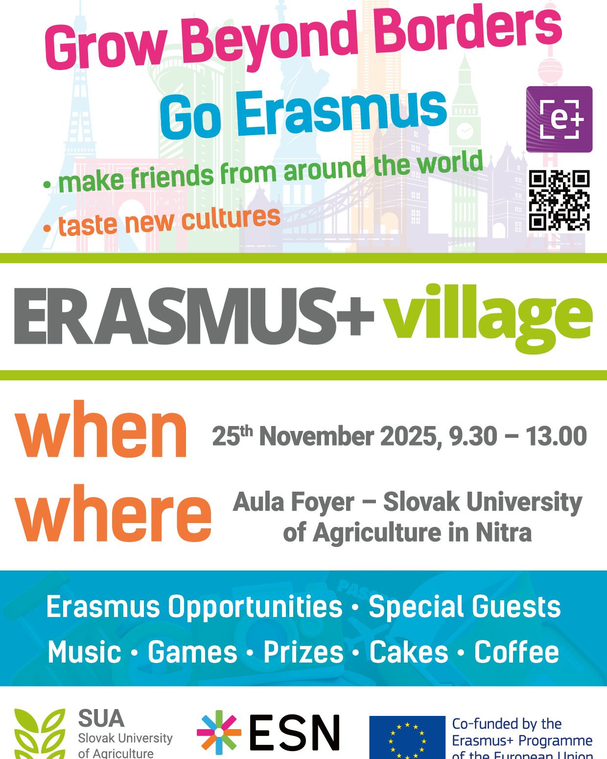 Chceš zažiť atmosféru rôznych krajín, spoznať nové kultúry a získať cenné informácie o štúdiu v zahraničí, no bez toho, aby si musel opustiť Nitru? Potom je Erasmus Village 2025 tou správnou voľbou!
